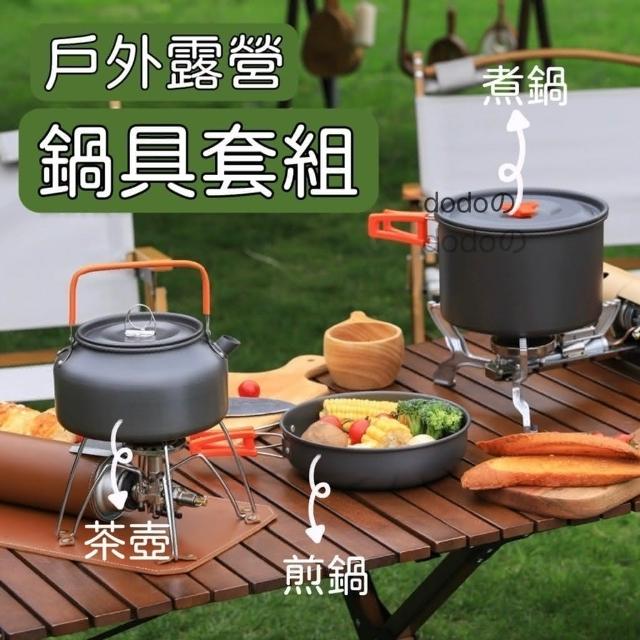 📣YEES!野絲現貨🚀戶外露營水壺鍋具套組2-3人 便携野营锅具烧水壶三件套 露營煮水壺 戶外露營煎鍋煮鍋 戶外鍋具組 茶壺