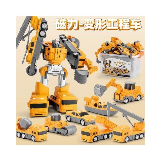 📣YEES!野絲現貨🚀兒童磁力拼裝工程車消防軍事百變積木合體變形機器人益智男孩玩具