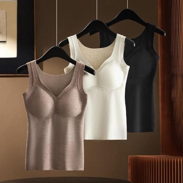 〔OniWear〕秋冬新款德絨保暖背心 自帶胸墊 山羊絨 桑蠶絲 加厚無痕內衣 打底衣 保暖背心 發熱衣