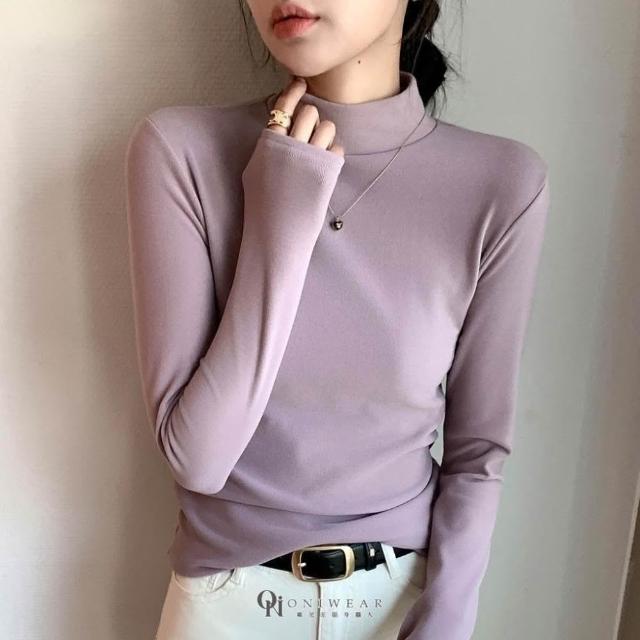 〔OniWear〕 秋冬8色新款半高領德絨打底衫 女內搭 加厚保暖衣 圓領 內搭上衣 保暖衣 打底衣