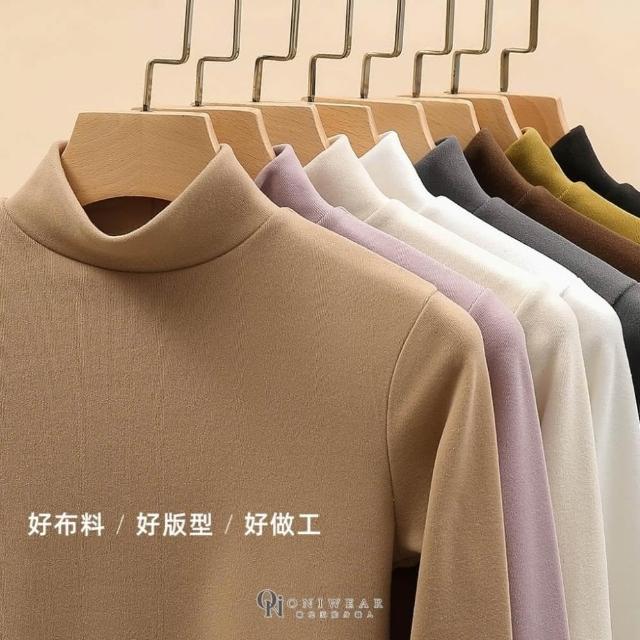 〔OniWear〕 秋冬8色新款半高領德絨打底衫 女內搭 加厚保暖衣 圓領 內搭上衣 保暖衣 打底衣