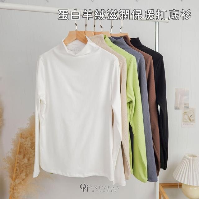 OniWear 🔥秋冬現貨🔥超彈力羊絨蛋白中領打底衫 內磨毛 內搭上衣 秋冬加絨中領長袖 薄長袖上衣 螺紋 打底衫