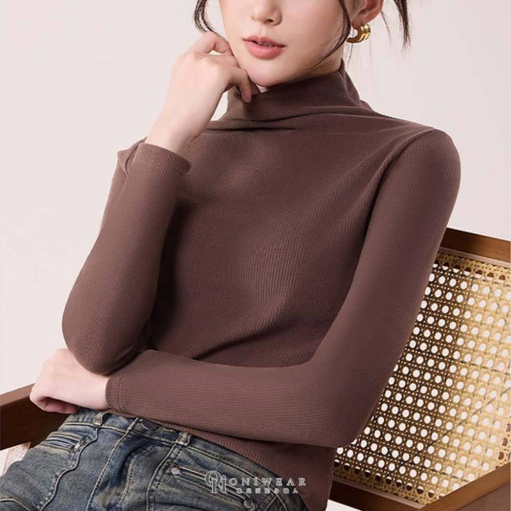 OniWear 🔥秋冬現貨🔥超彈力羊絨蛋白中領打底衫 內磨毛 內搭上衣 秋冬加絨中領長袖 薄長袖上衣 螺紋 打底衫