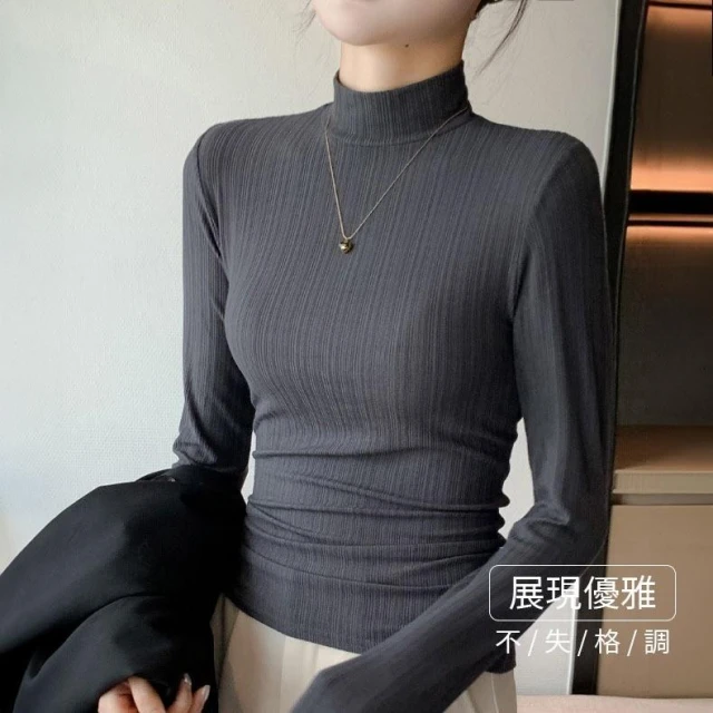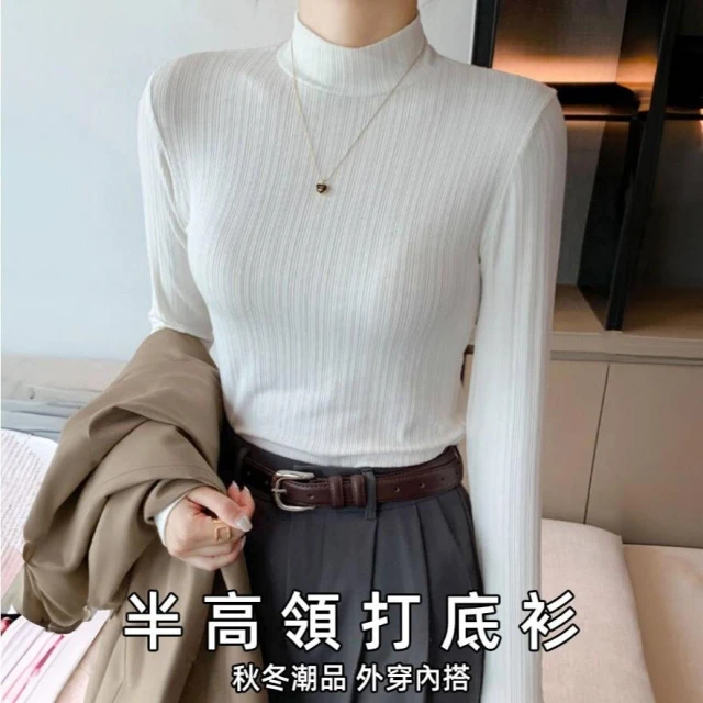 OniWear 休閒簡約高彈力半高領內搭上衣 打底衫女款 可外穿 內搭服 打底衣 內搭衣 高領長袖