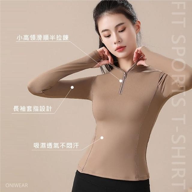 OniWear 女立領拉鍊長袖健身衣 跑步運動上衣 速乾 瑜珈緊身服 瑜珈T恤 拉鍊上衣 女生運動衣 瑜珈衣