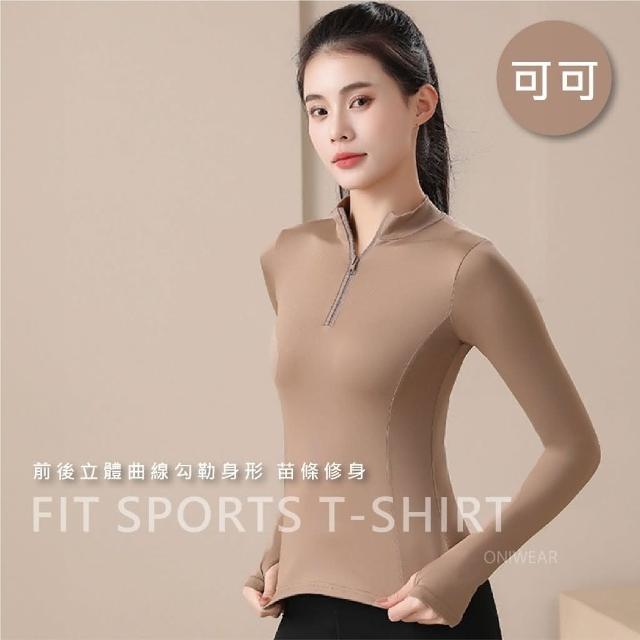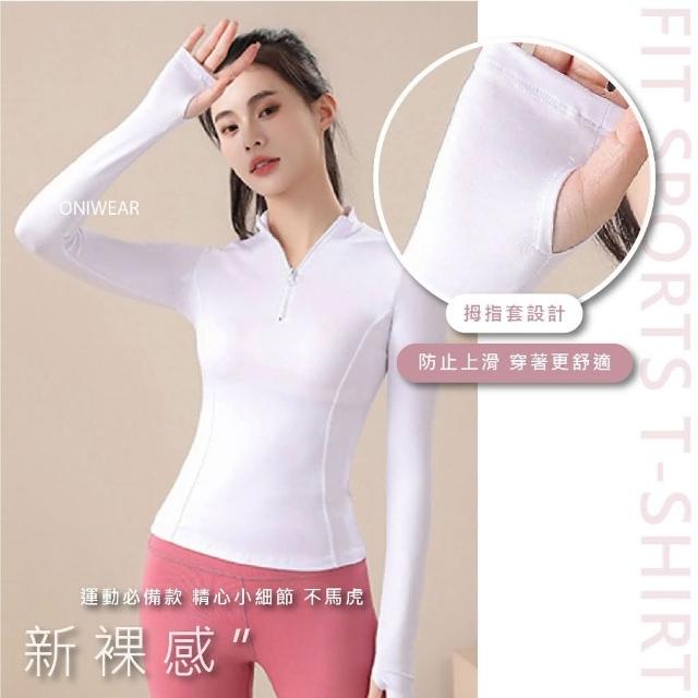 OniWear 女立領拉鍊長袖健身衣 跑步運動上衣 速乾 瑜珈緊身服 瑜珈T恤 拉鍊上衣 女生運動衣 瑜珈衣
