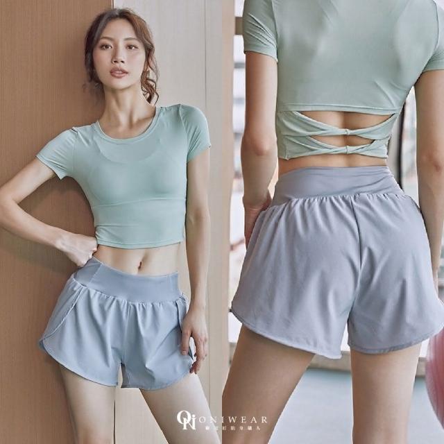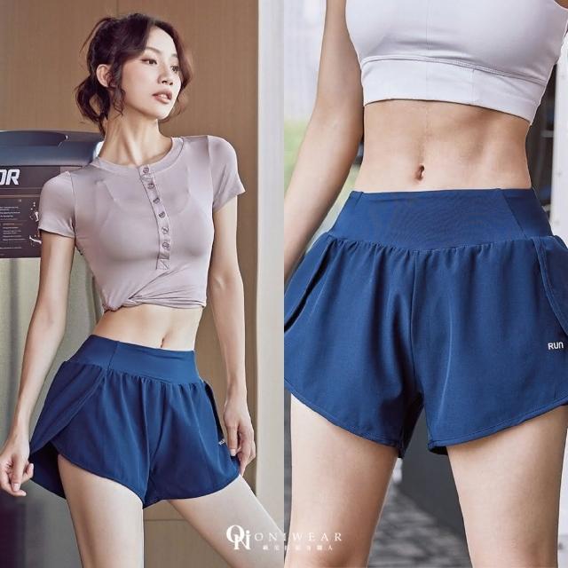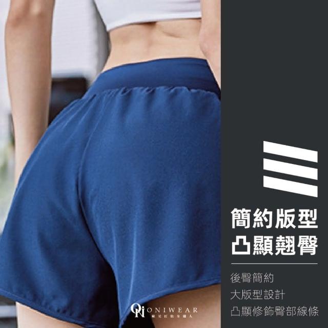OniWear 顯瘦跑步運動短褲 假2件雙層 防走光 跑步短褲 腰顯瘦效果 瑜伽褲 健身褲 速乾接運動短褲 速乾短褲