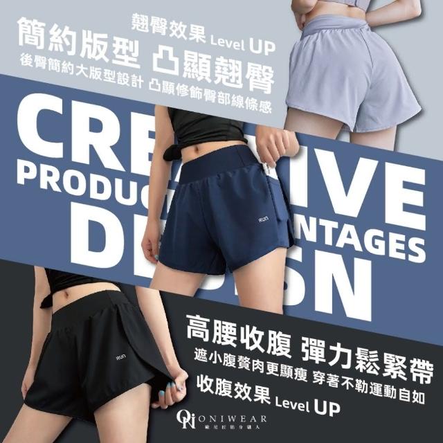 OniWear 顯瘦跑步運動短褲 假2件雙層 防走光 跑步短褲 腰顯瘦效果 瑜伽褲 健身褲 速乾接運動短褲 速乾短褲