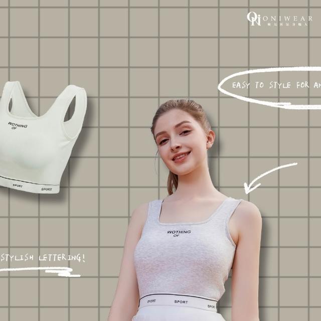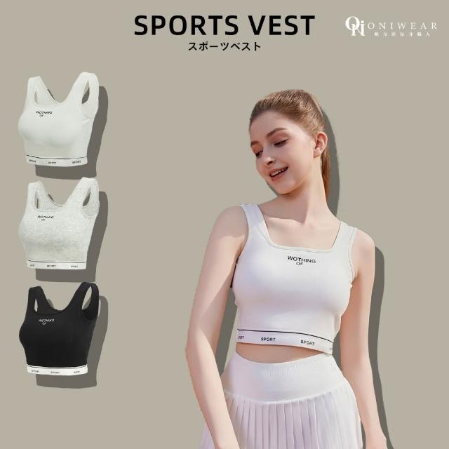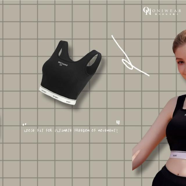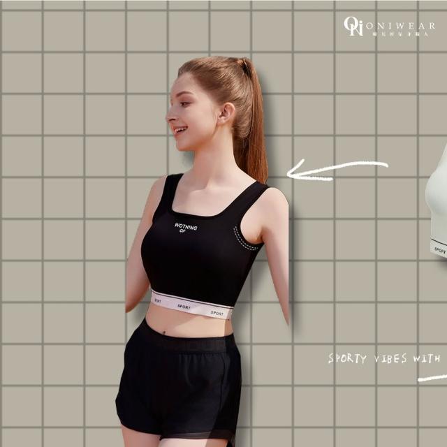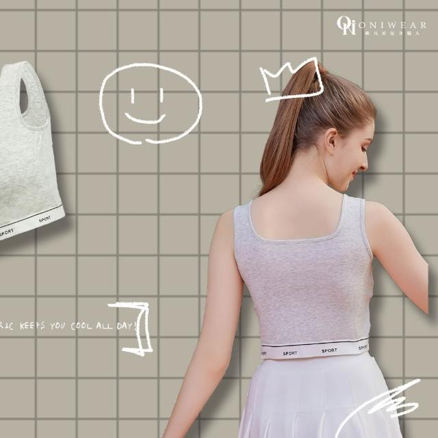 OniWear 夏季方領冰絲寬肩帶運動背心 一體式杯墊 固定杯 冰絲小可愛 遮副乳 寬肩小可愛 運動內衣 背心女