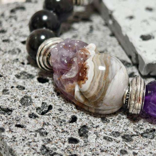 MWS【Dream Crystal Art】紫極星輝 - 敦煌極光瑪瑙貔貅紫水晶手串
