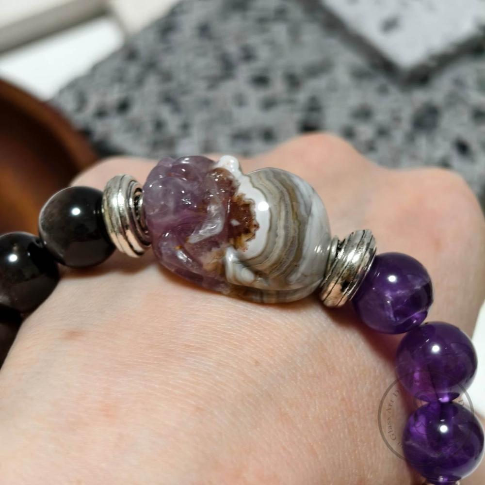 MWS【Dream Crystal Art】紫極星輝 - 敦煌極光瑪瑙貔貅紫水晶手串