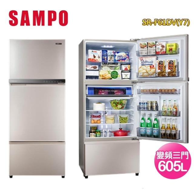 SAMPO 聲寶605公升一級星美滿極光鈦旗艦變頻系列玻璃三門冰箱SR-F61DV-Y7(含拆箱定位+舊機回收)