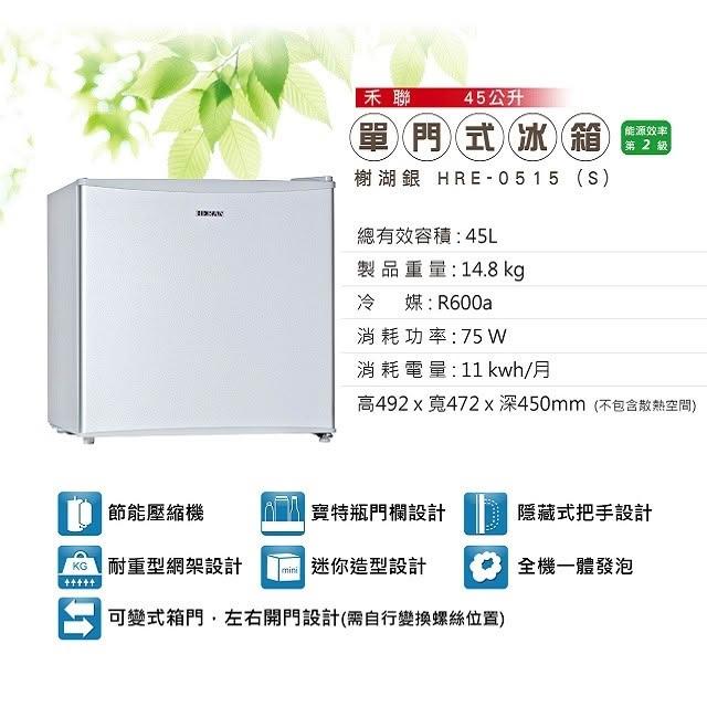 HERAN 禾聯HERAN 禾聯 HRE-0515(S)單門小冰箱45L (含基本安裝)