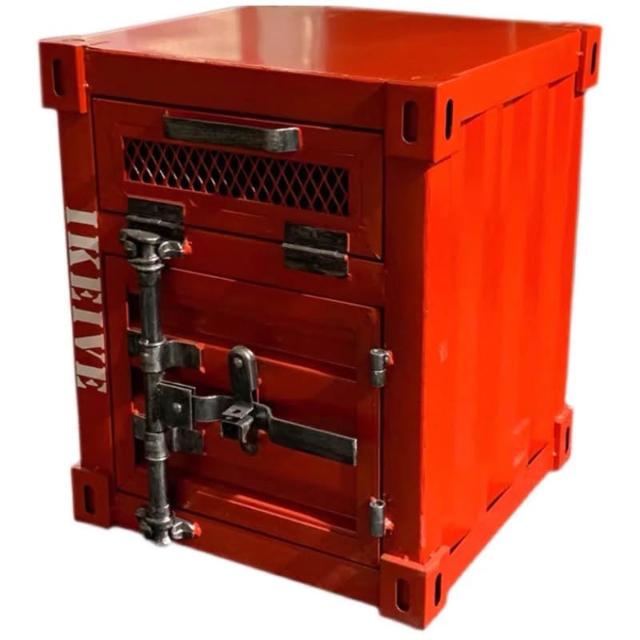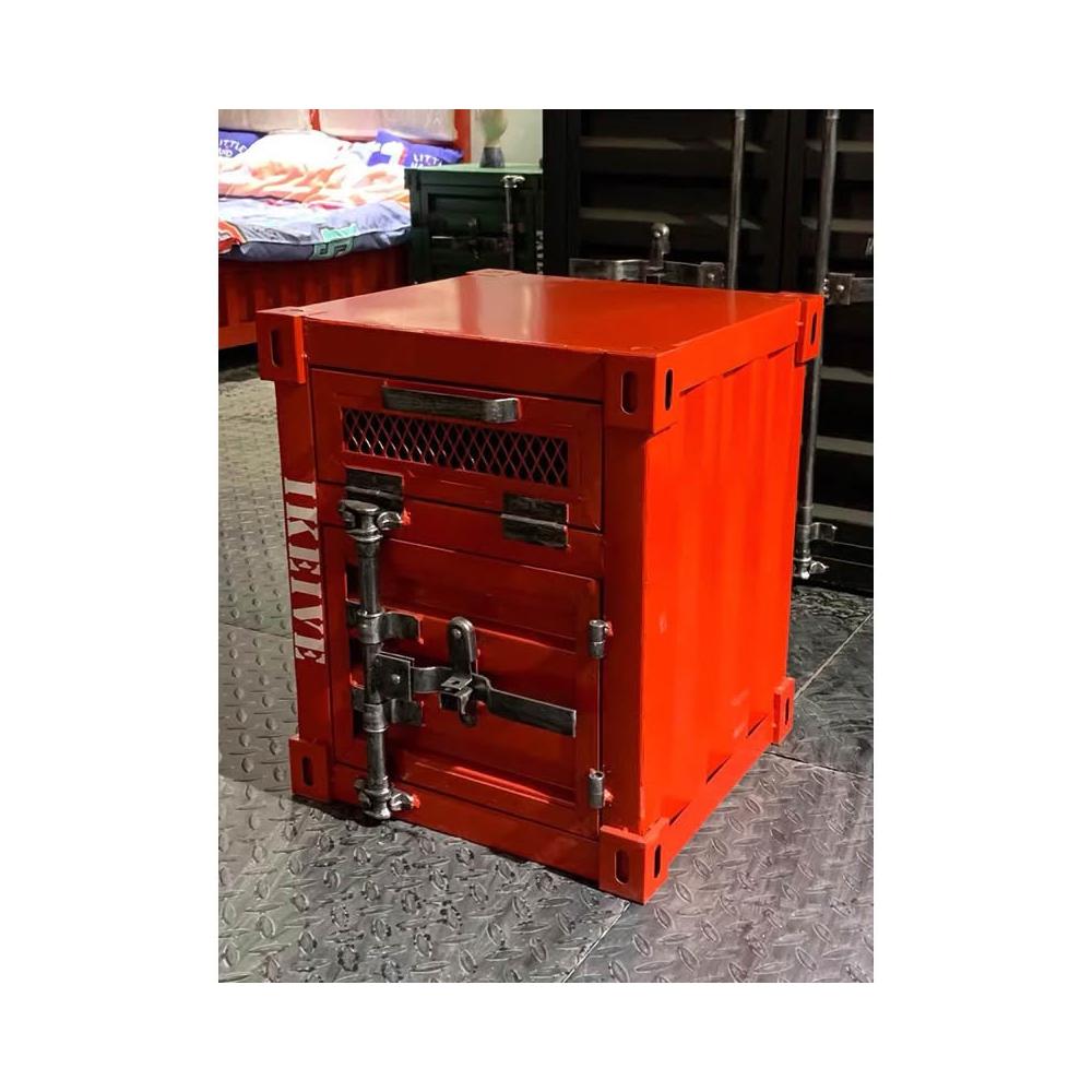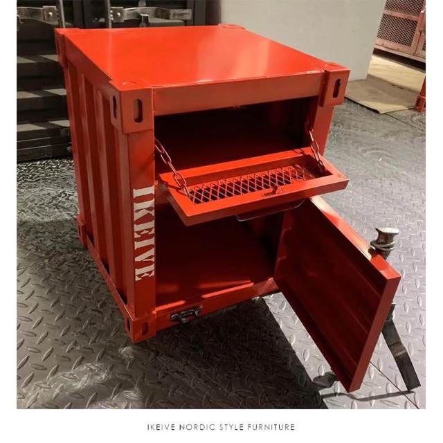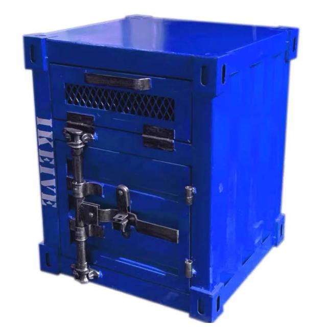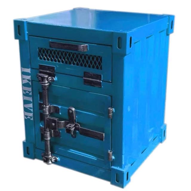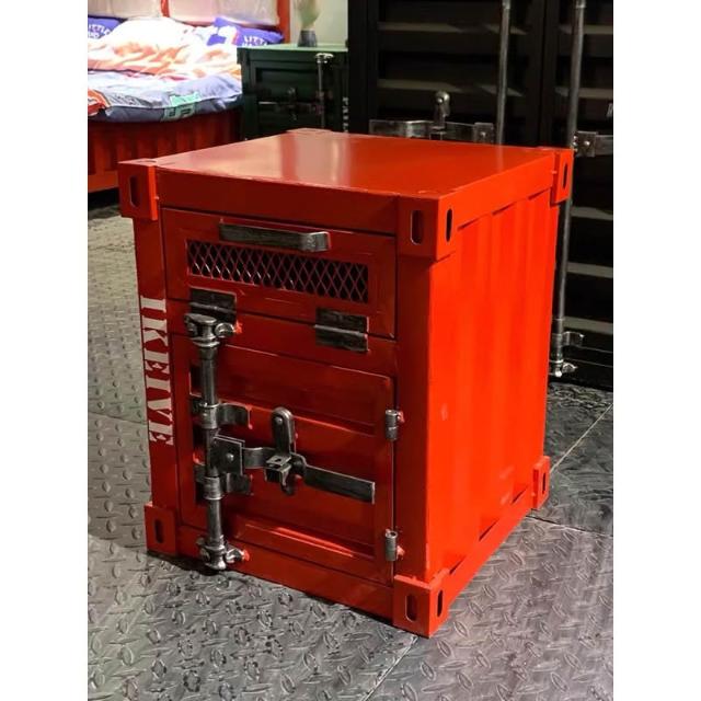 復古LOFT工業風床頭櫃小貨櫃貨櫃床頭櫃工業風儲物櫃集裝箱櫃子鐵藝床頭櫃帶鎖創意床邊小櫃子小型收納櫃