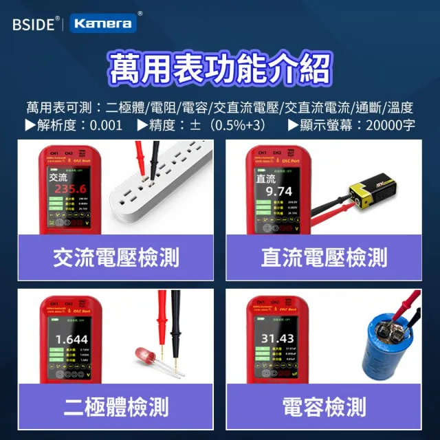 BSIDED三合一 雙通道示波器 萬用表 (O9) 50MHz 雙通道示波器 訊號產生器 波形顯示 智能防燒