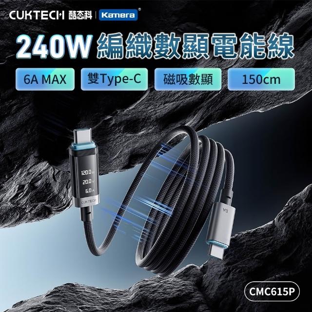 CUKTECH 酷態科240W Type-C 磁吸版 數顯電能 編織數據線 OLED PD充電線1.5M CMC615P 聖誕 交換禮物