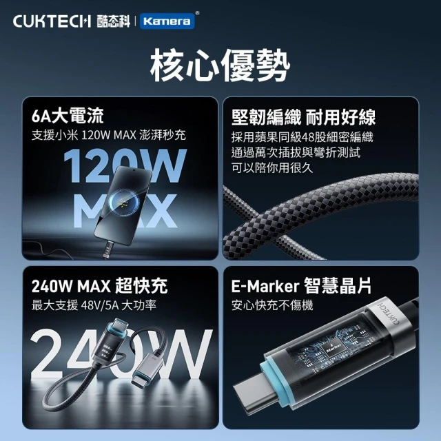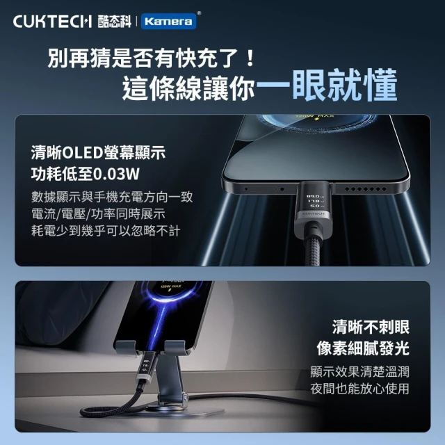 CUKTECH 酷態科240W TYPE-C OLED 數據顯示 6A 編織 數顯電能線 電壓/電流/功率