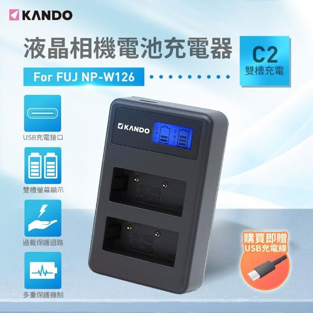 KANDO適用Fujifilm NP-W126 W126S 電池 液晶充電器 雙槽 USB充電