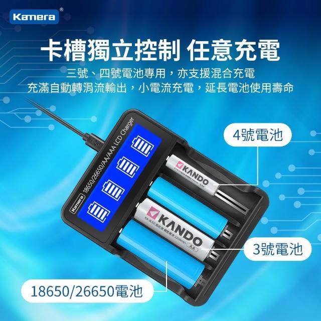 Kamera 佳美能18650 26650 3號 4號 充電電池 液晶顯示 四槽充電器 (L465)