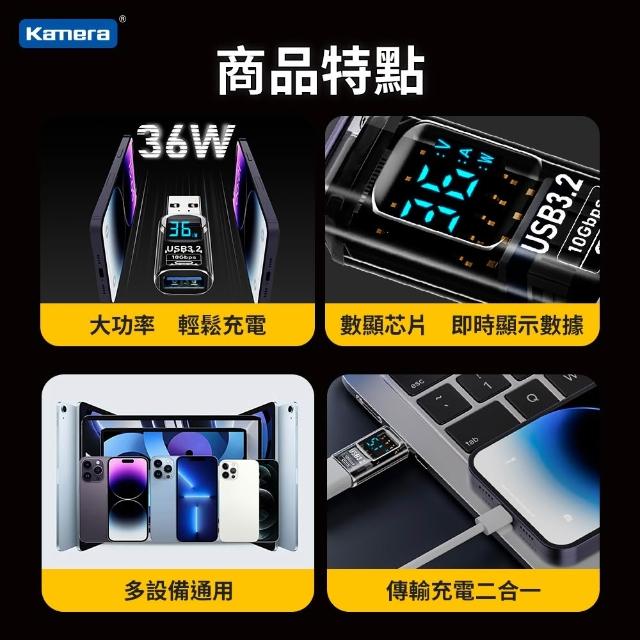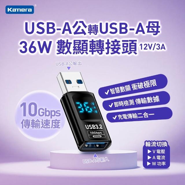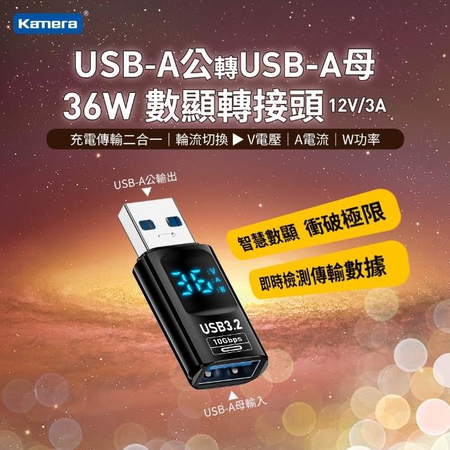 Kamera 佳美能USB-A公轉USB-A母 數顯 轉接頭 36W/12V/3A 充電 傳輸 即時數據顯示