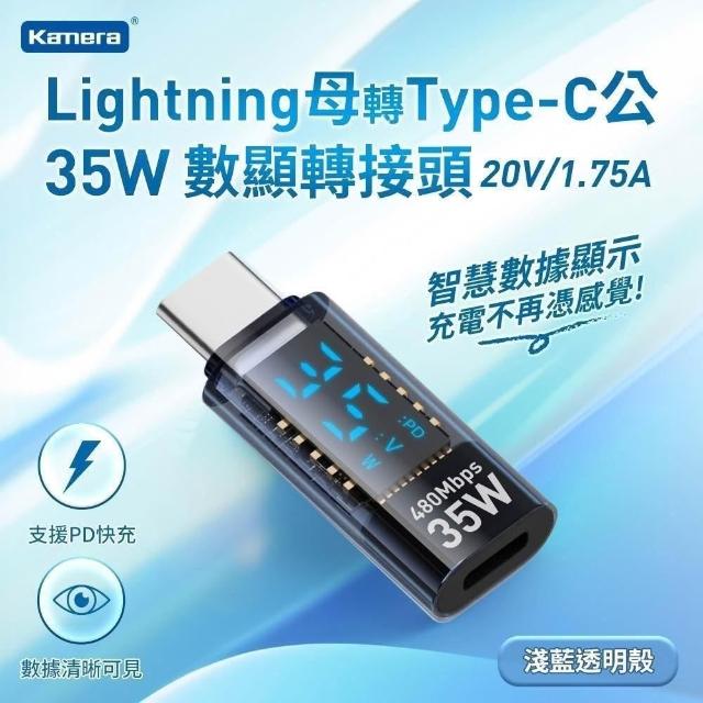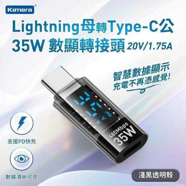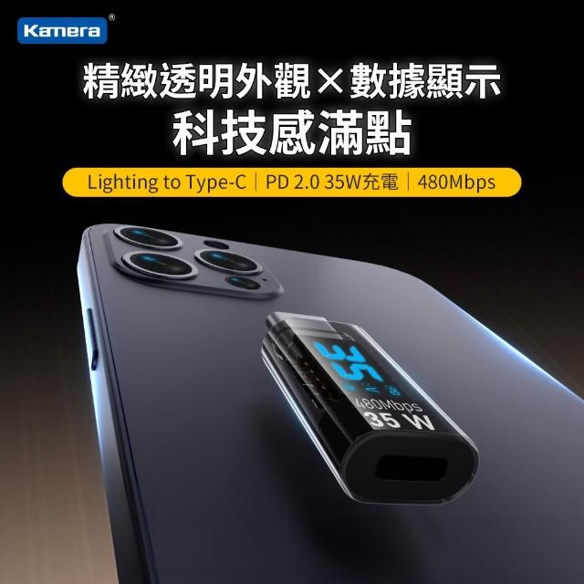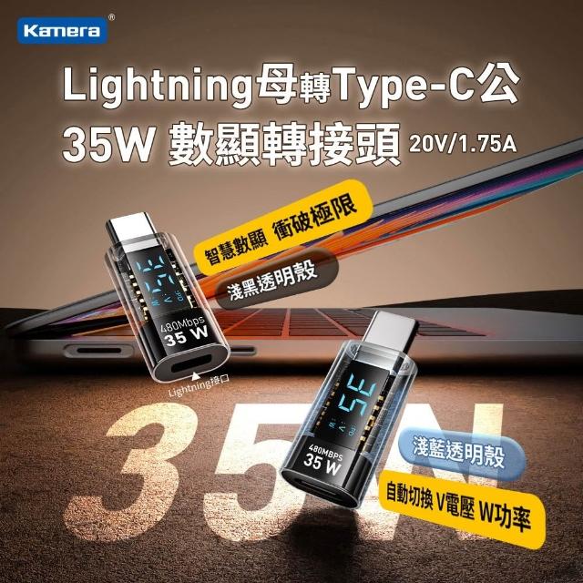 Kamera 佳美能Lightning母轉Type-C公 數顯轉接頭-透明黑 35W iPhone轉Typc