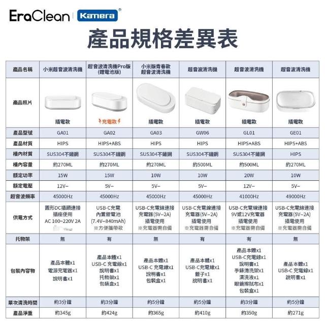 Kamera 佳美能🛒🔥 小米超聲波清洗機 刷具清洗機 洗眼鏡機 EraClean 世淨 GA01 GA02 GA03