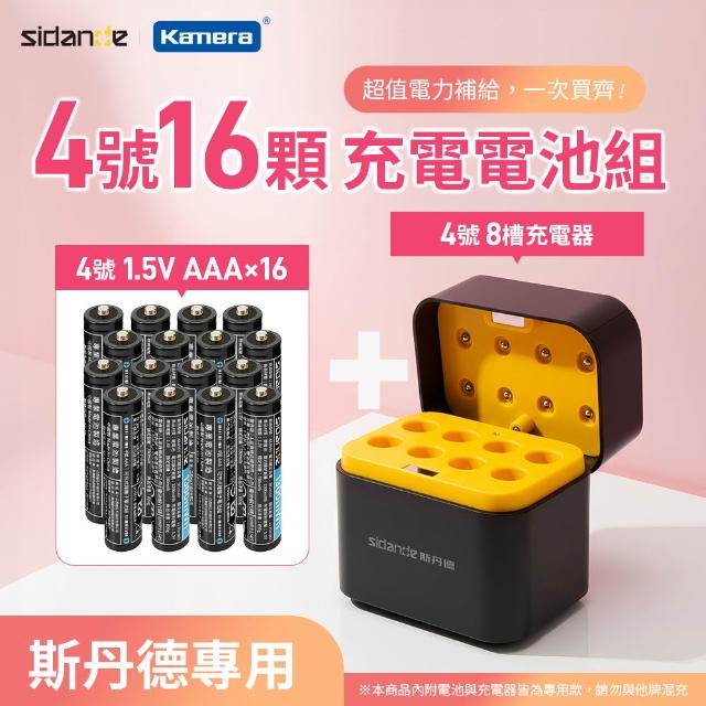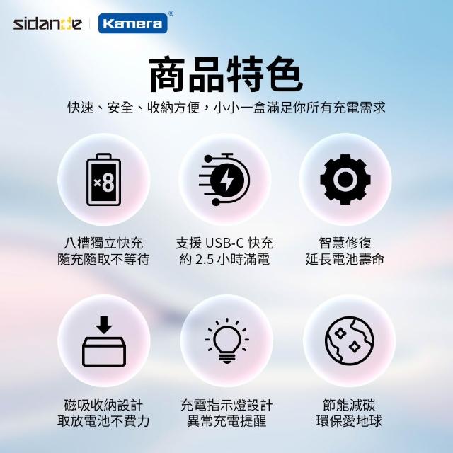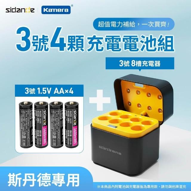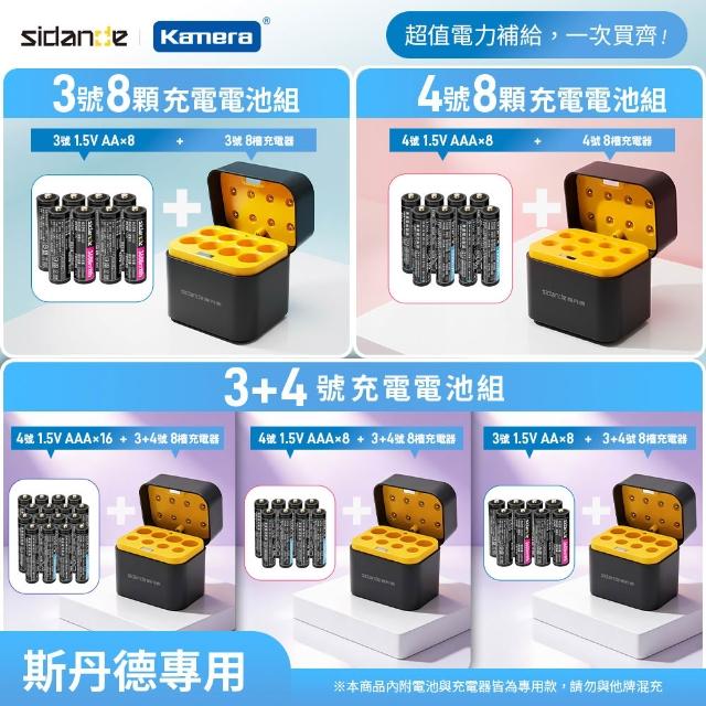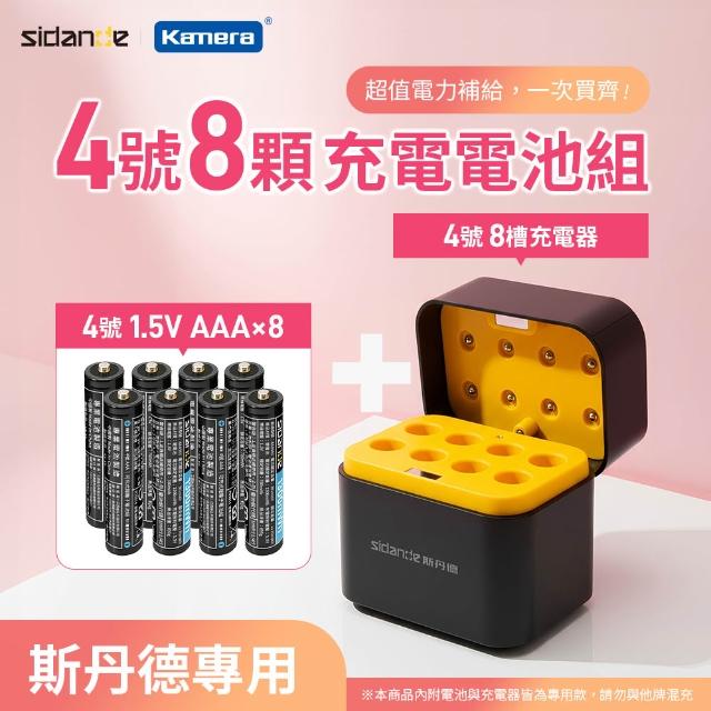 Sidande 斯丹德快充 AAA AA 3號電池 4號電池 充電式鋰電池 1300mWh (8顆入+充電器組合)