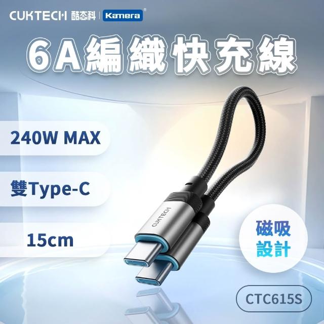 CUKTECH 酷態科Ⓜ240W 15cm 雙TYPE-C 短線 磁吸摺疊 編織快充線 6A 充電線 CTC615S IPhone 17 黑
