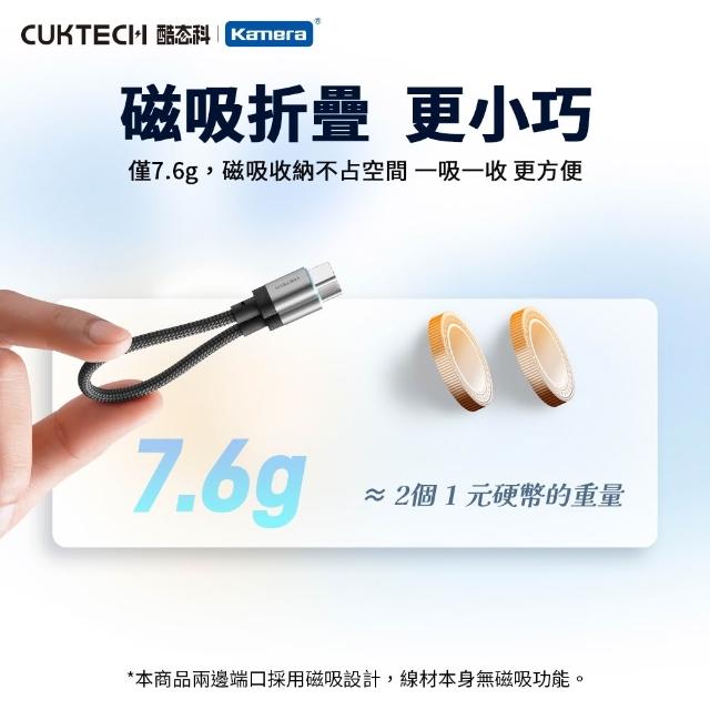 CUKTECH 酷態科Ⓜ240W 15cm 雙TYPE-C 短線 磁吸摺疊 編織快充線 6A 充電線 CTC615S IPhone 17 黑