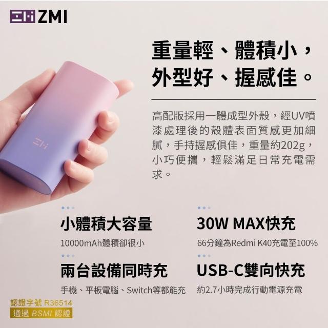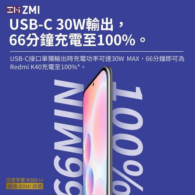 ZMIBSMI 30W 迷你型移動電源 10000mAh (QB818) PD QC 雙向快充 Wh標示