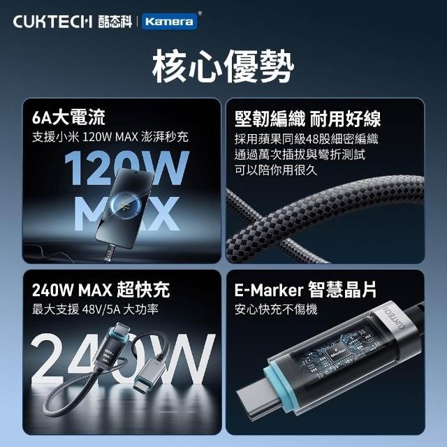 CUKTECH 酷態科240W 2米 Type -C OLED 數據顯示 6A 編織 數顯電能線 充電線
