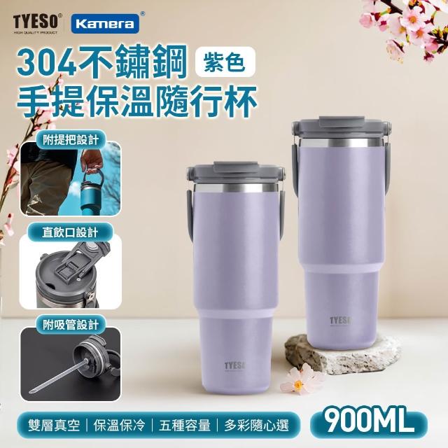 TYESO900ml 紫色304不銹鋼 手提保溫杯 保溫瓶 保溫杯 冰壩杯 手搖杯 咖啡杯 冰霸杯 吸管杯 保冷杯 雙飲杯 隨身杯