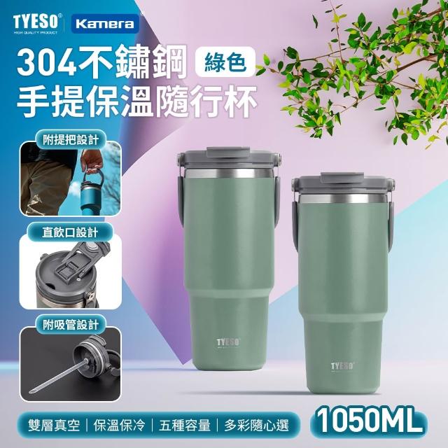 TYESO1050ml 綠304不銹鋼 手提保溫杯 保溫瓶 保溫杯 冰壩杯 手搖杯 咖啡杯 冰霸杯 吸管杯 保冷杯 雙飲杯 隨身杯