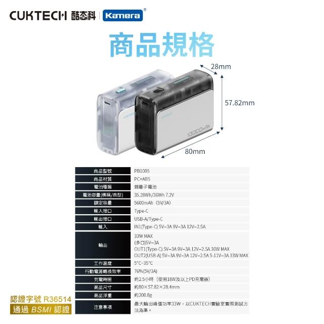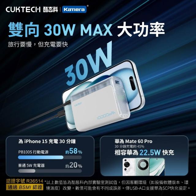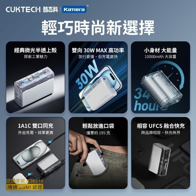 CUKTECH 酷態科30W快充 口袋型行動電源 10000mAh CCC認證 Wh標示 可上飛機 符合航空規範