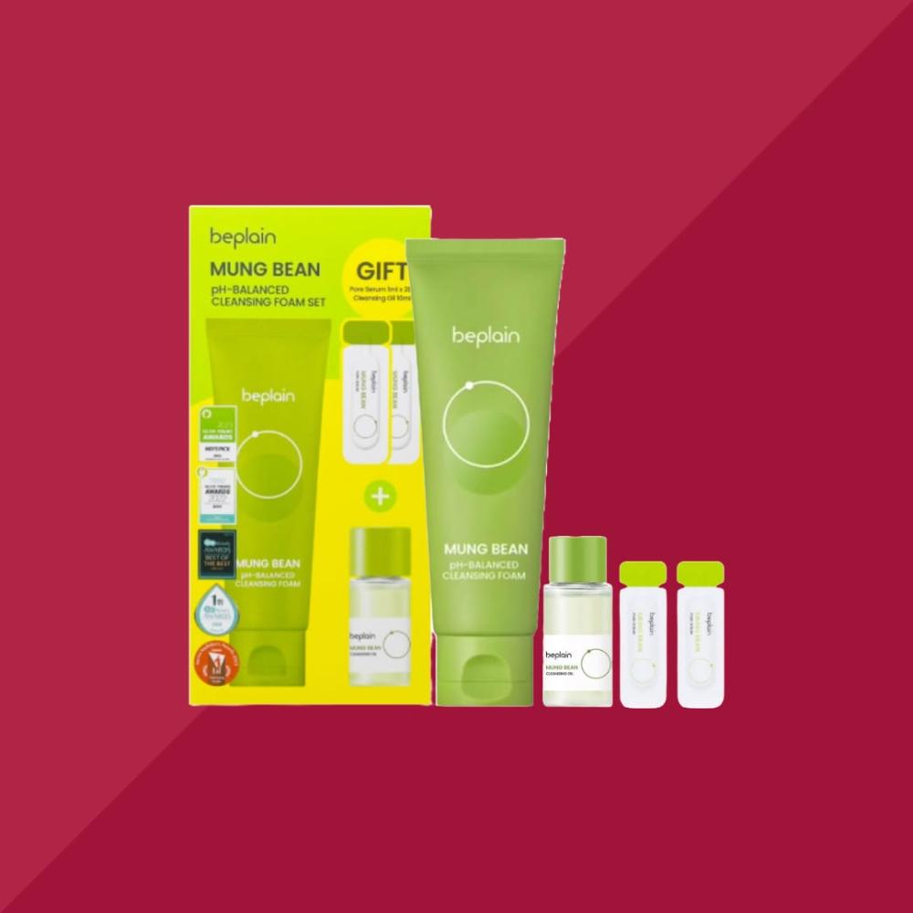 beplain 苾沛恩綠豆溫和清潔保養套組|洗面乳 卸妝油 毛孔精華 臉部清潔 溫和 Olive Young