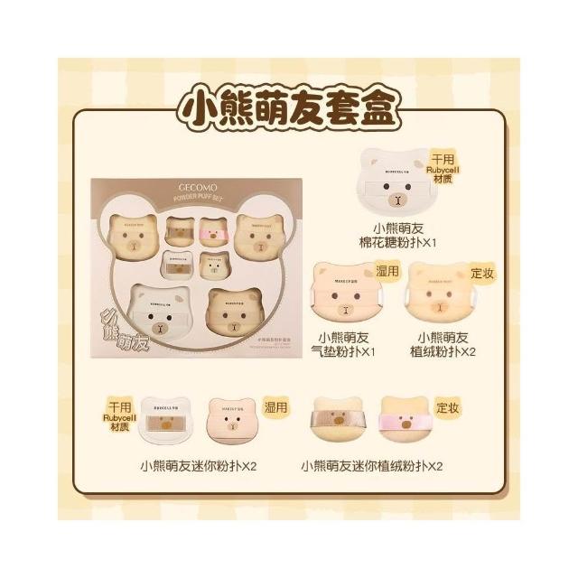 [ MIC ] GECOMO 格蒙 小熊粉撲系列|小熊萌友 粉撲套盒 氣墊植絨 柔軟Q彈 定妝氣墊粉撲 美妝蛋