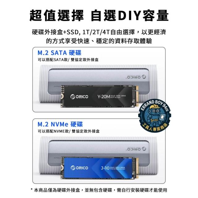 ORICOAXM2-G2-V1 高速鋁合金 M.2 NVMe SSD 外接盒 | 10Gbps超快傳輸・最大支援8TB・附二合一線