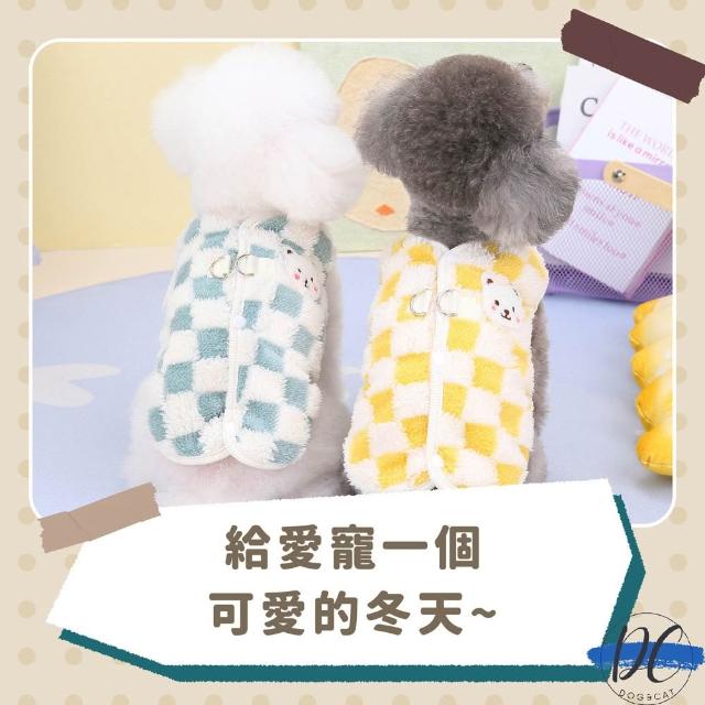 DC寵物現貨秒出🐾格紋小熊背心 寵物毛絨背心 秋冬寵物衣服 寵物毛衣 寵物服飾 寵物雙面絨衣 寵物保暖衣服 A263