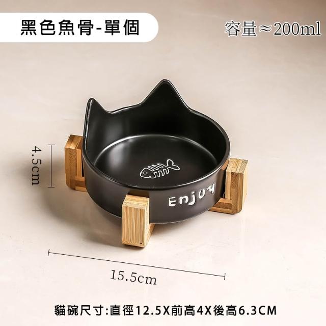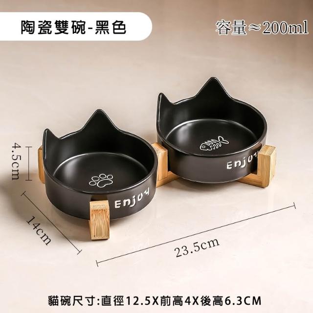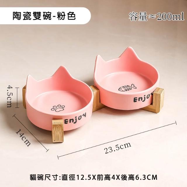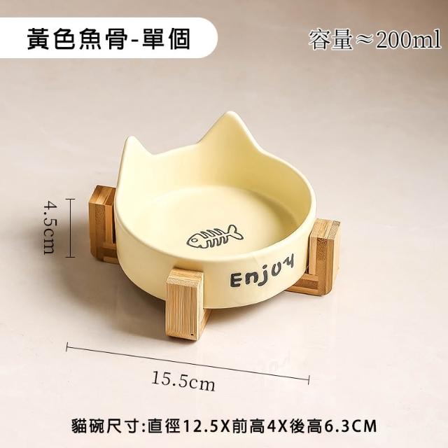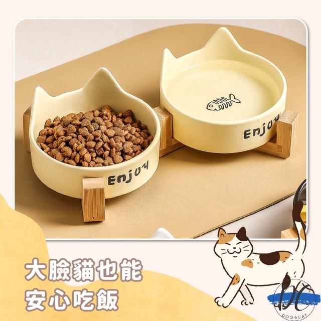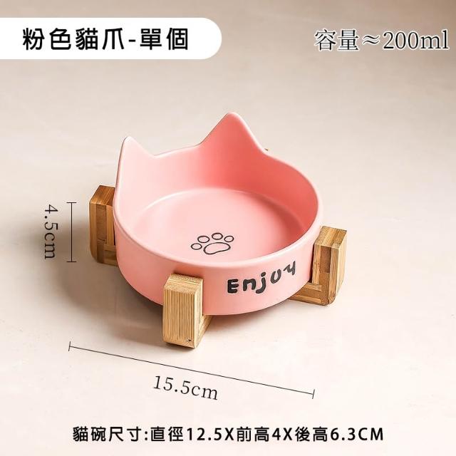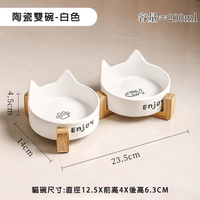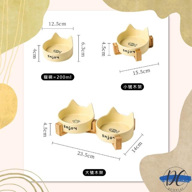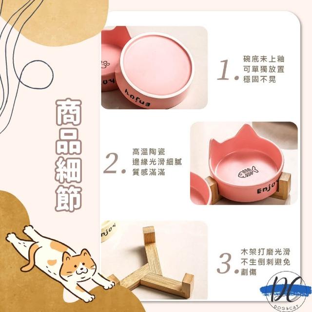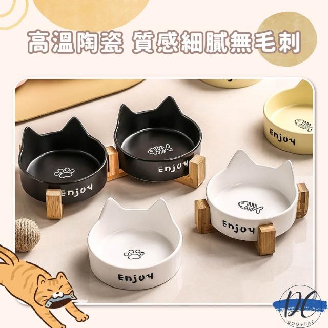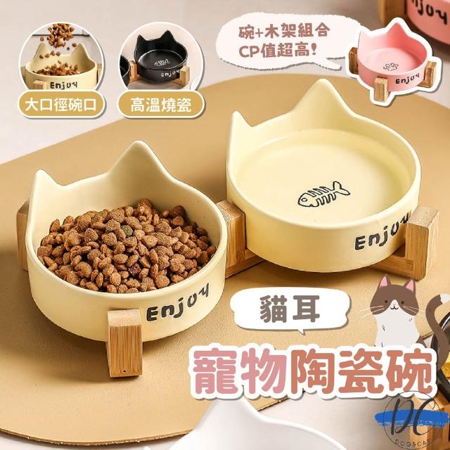 DC寵物現貨秒出🐾寵物貓耳陶瓷碗 寵物碗架 貓耳造型碗 貓碗架 寵物餐桌 貓咪餐桌 寵物木架 水碗 飼料碗 A277