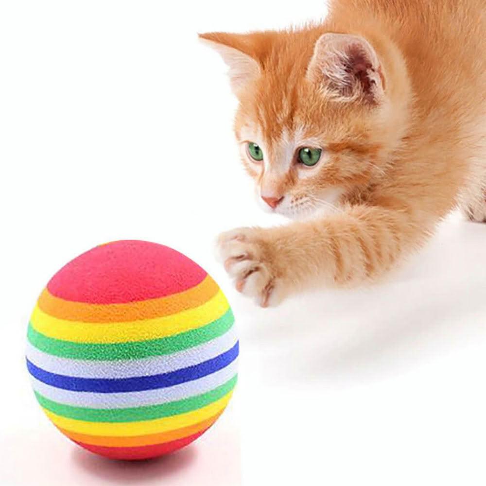 DC寵物現貨秒出🐾超Q彩虹球 EVA實心彈力球 彩虹玩具球 彈力球 逗貓球 滾球玩具 靜音玩具球 耐抓耐咬 A295