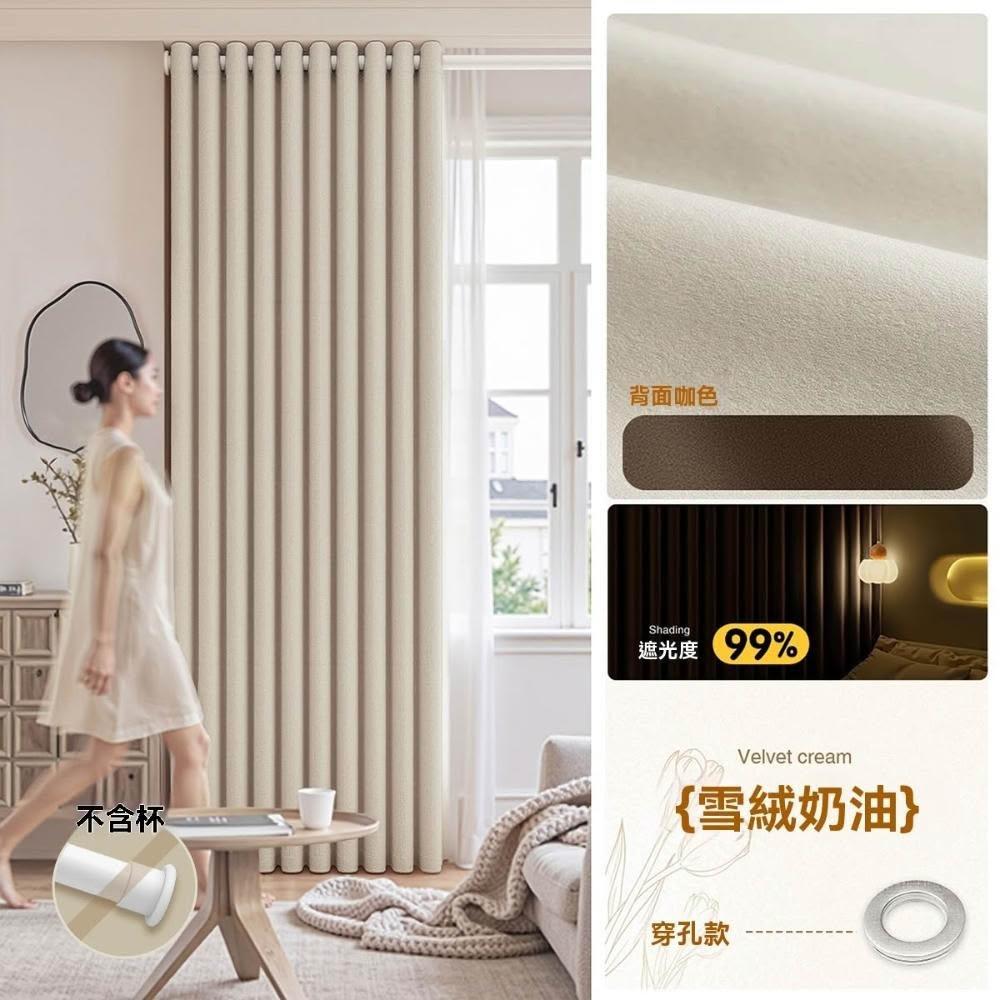 加厚99%遮光🔥客製化 日系奶茶色遮光簾 隔熱隔音窗簾 奶油色窗簾 遮光窗簾 落地窗簾 窗簾布(雪尼爾材質/黑金覆底)