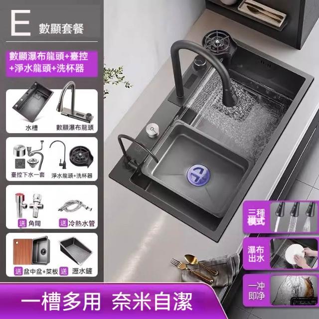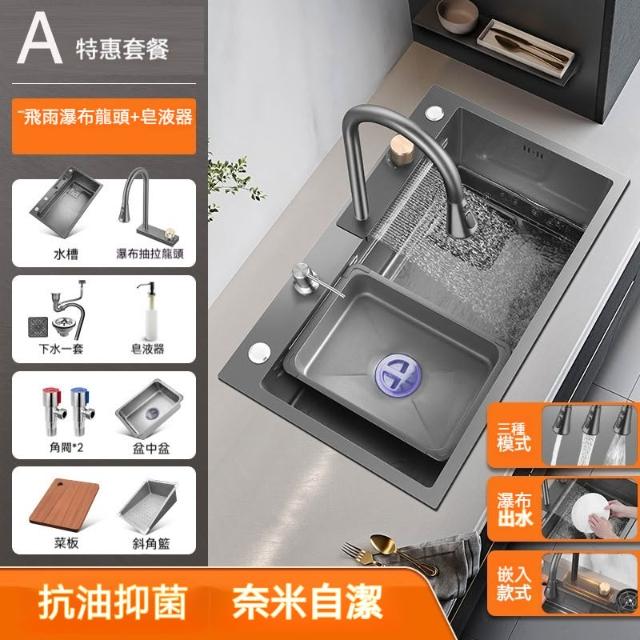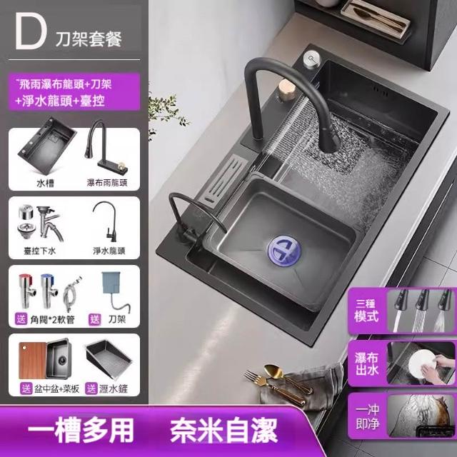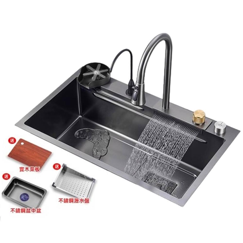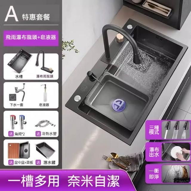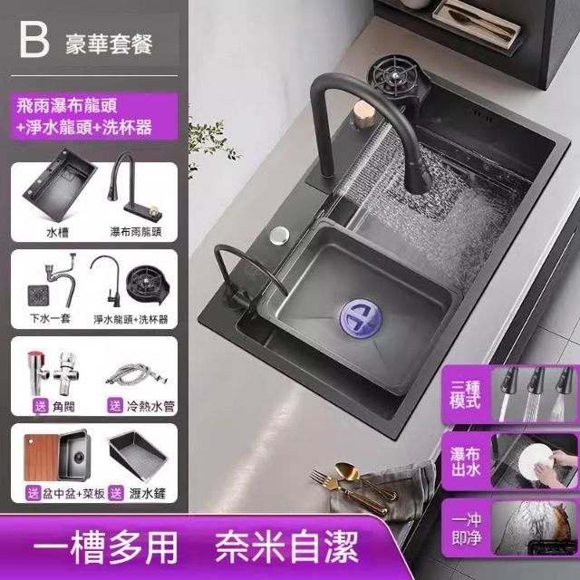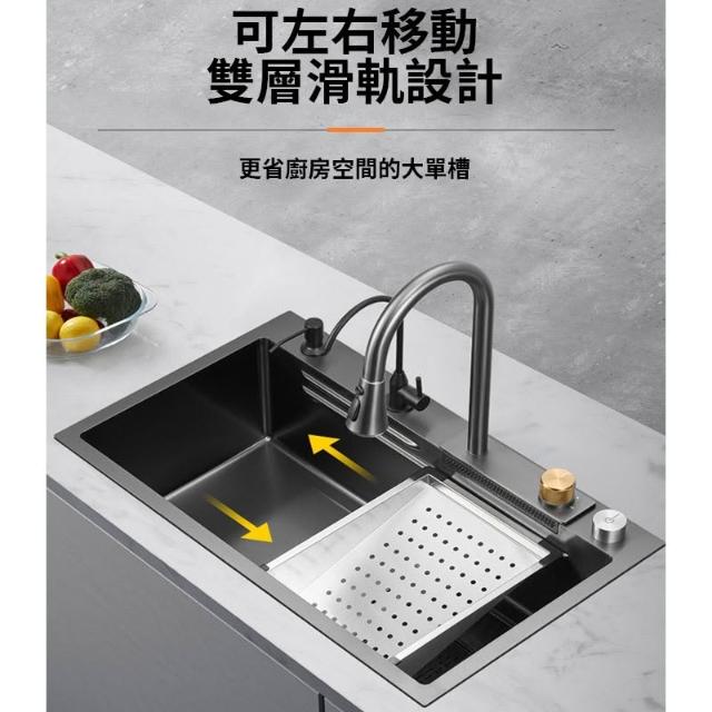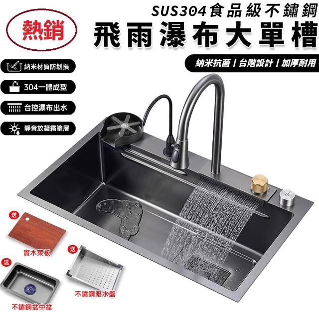 雙台階設計🔥飛雨瀑布大單槽 水槽 廚房水槽 納米抗菌塗層 SUS304不鏽鋼材質 廚房大容量水槽 不鏽鋼水槽