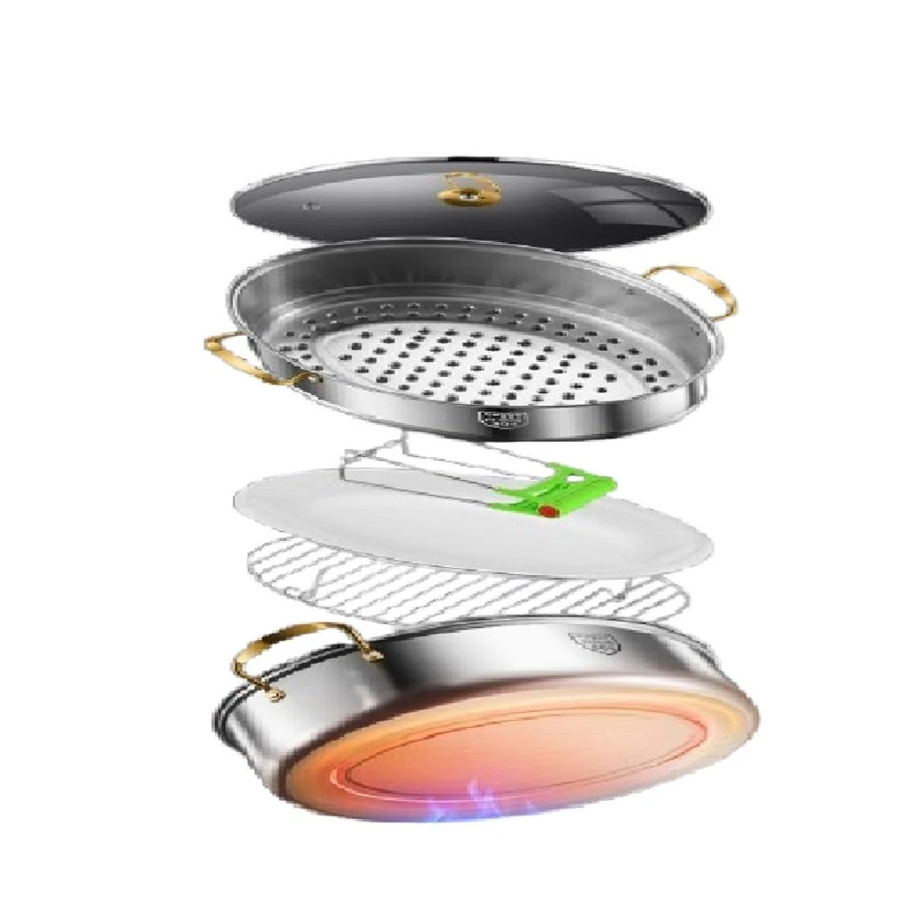 贈蒸魚架+蒸魚盤🔥橢圓形蒸魚專用鍋 蒸鍋 魚盤 蒸魚鍋 煎魚鍋 蒸魚 不鏽鋼蒸鍋 陽極鍋 海鮮塔 方鍋 烤魚爐