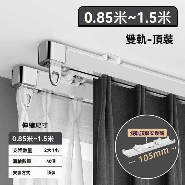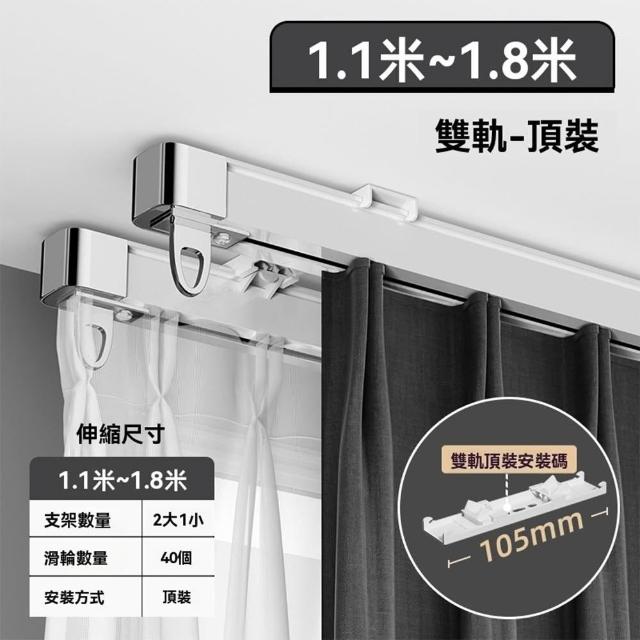 鋁合金窗簾軌道 窗簾軌道 伸縮軌道 窗簾滑軌 單軌頂裝側裝 窗簾雙軌(伸縮調節/無需組裝/鋁合金材質)