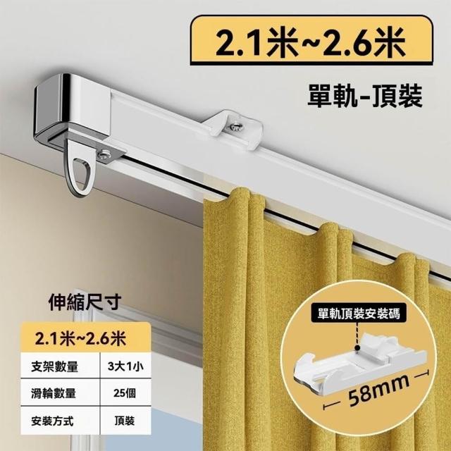 鋁合金窗簾軌道 窗簾軌道 伸縮軌道 窗簾滑軌 單軌頂裝側裝 窗簾雙軌(伸縮調節/無需組裝/鋁合金材質)