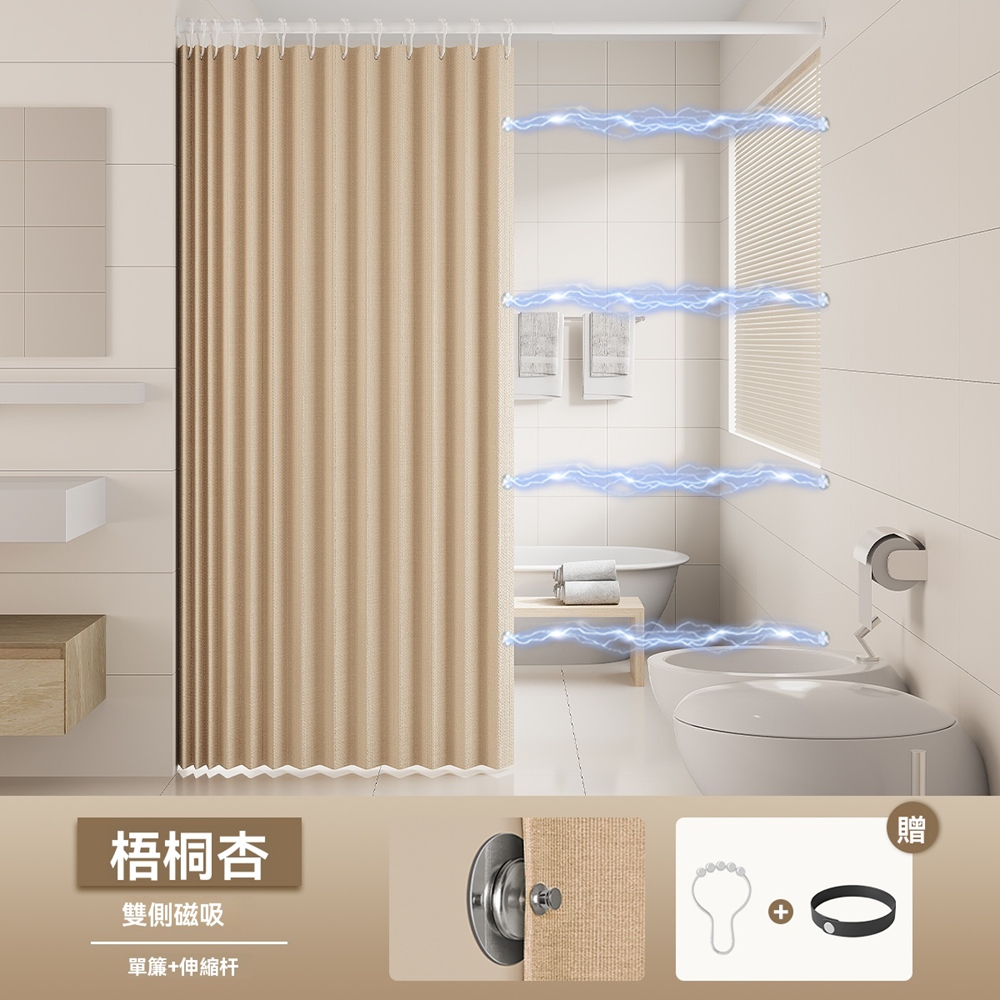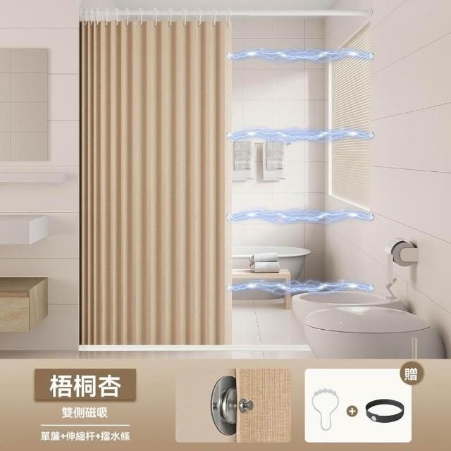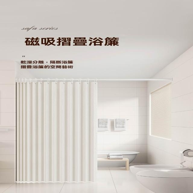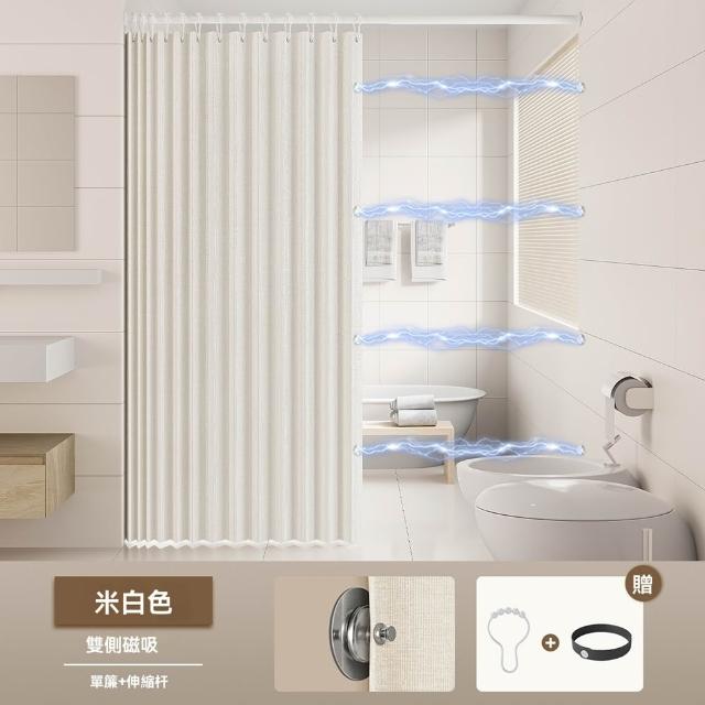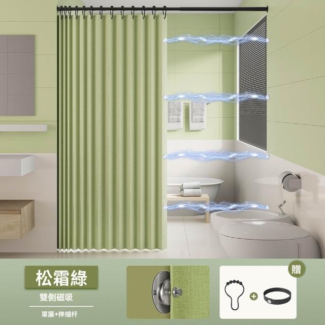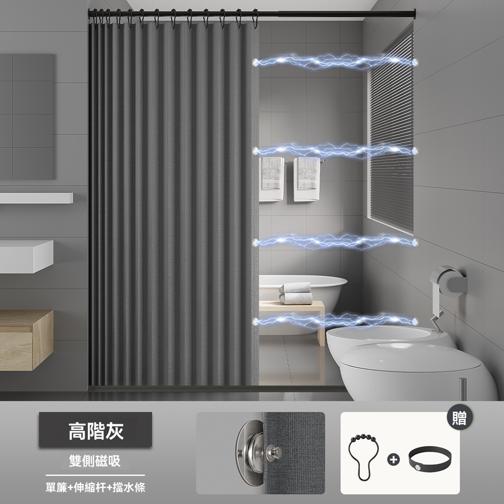 磁吸浴簾 折疊浴簾 防水浴簾 浴簾加厚防水防黴 浴簾 免打孔浴簾 隱形浴簾(自然垂順/仿亞麻面料/雙側磁吸)
