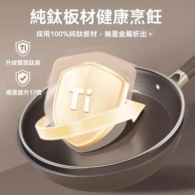 雙面鈦盾不沾炒鍋 雙面鈦鍋 鈦鍋 鈦炒金鍋 不沾鍋 不粘鍋 鈦合金鍋 適用電磁爐瓦斯爐(0氟塗層/耐磨抗刮/煎魚不破皮)