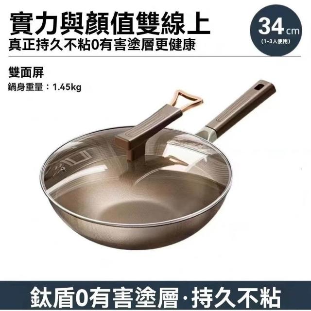 雙面鈦盾不沾炒鍋 雙面鈦鍋 鈦鍋 鈦炒金鍋 不沾鍋 不粘鍋 鈦合金鍋 適用電磁爐瓦斯爐(0氟塗層/耐磨抗刮/煎魚不破皮)