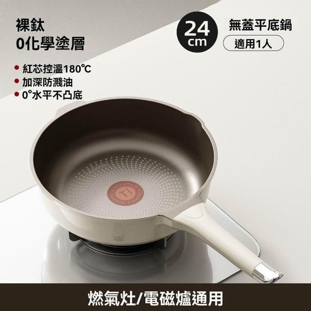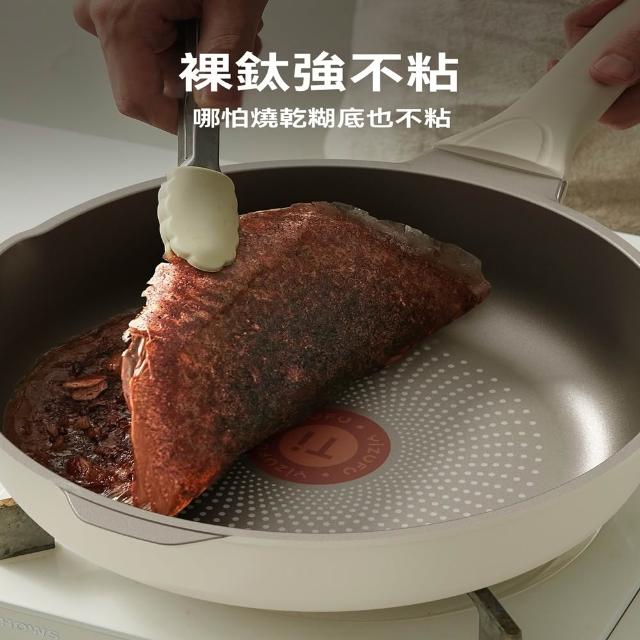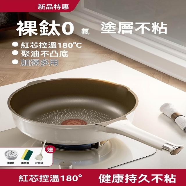 雙面鈦盾不沾炒鍋 鈦鍋 有鈦不粘鍋 無塗層不粘鍋 不沾平底鍋 炒鍋 不沾鍋(無氟塗層/紅芯控溫/0°大平底/持久不沾)