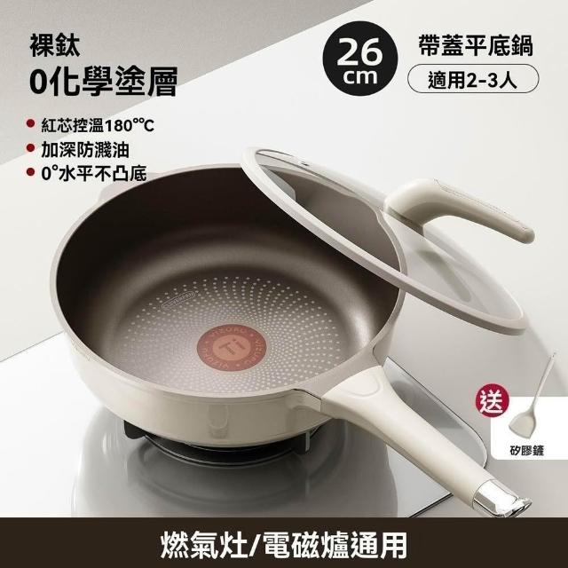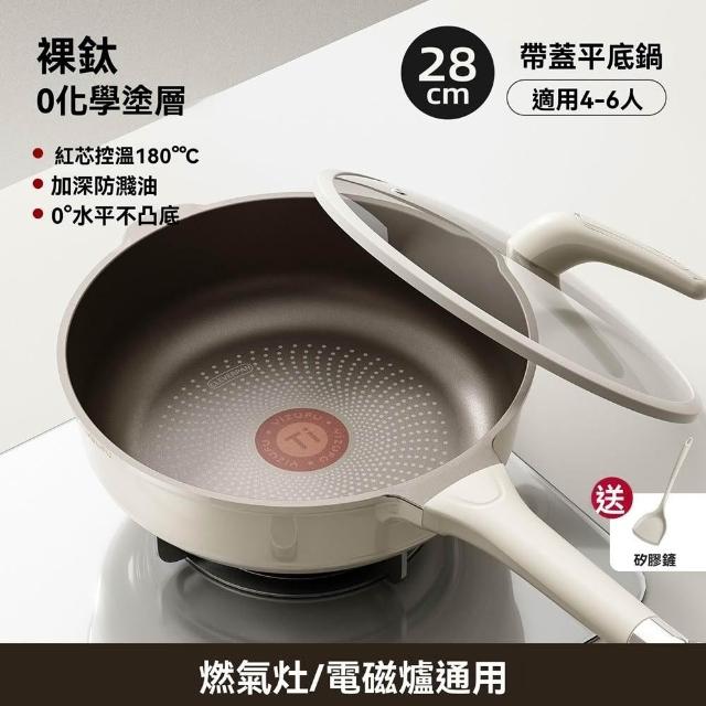 雙面鈦盾不沾炒鍋 鈦鍋 有鈦不粘鍋 無塗層不粘鍋 不沾平底鍋 炒鍋 不沾鍋(無氟塗層/紅芯控溫/0°大平底/持久不沾)